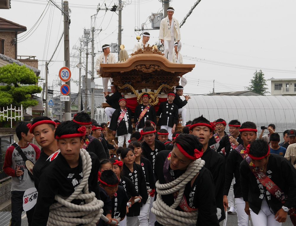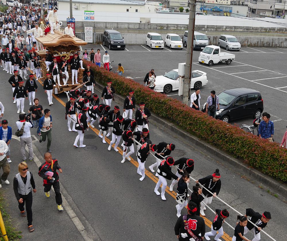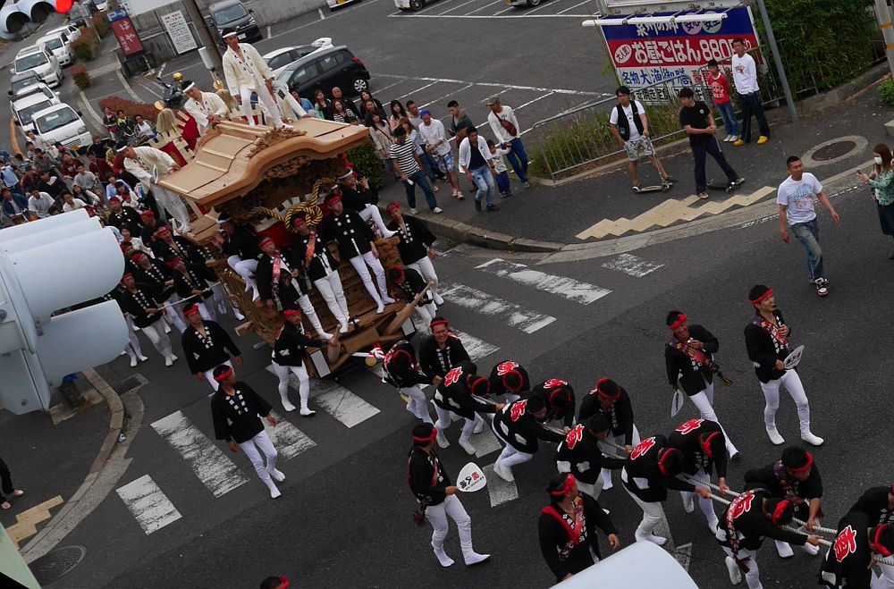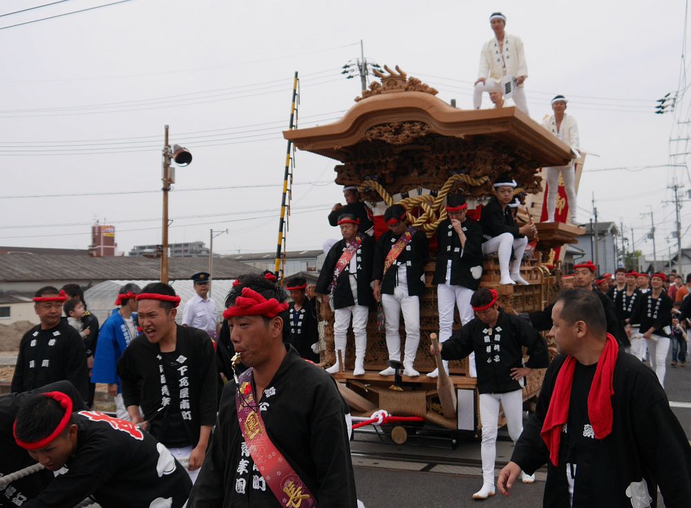 入魂式を終えてお披露目曳行中の下瓦屋南地車