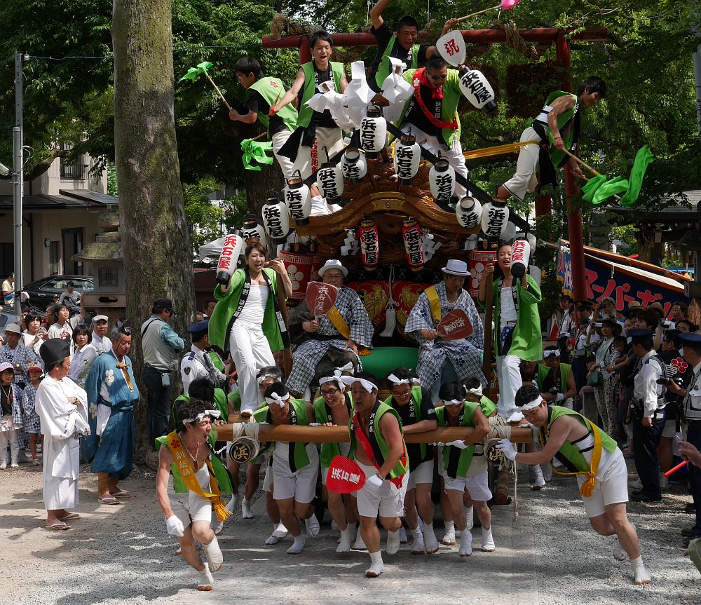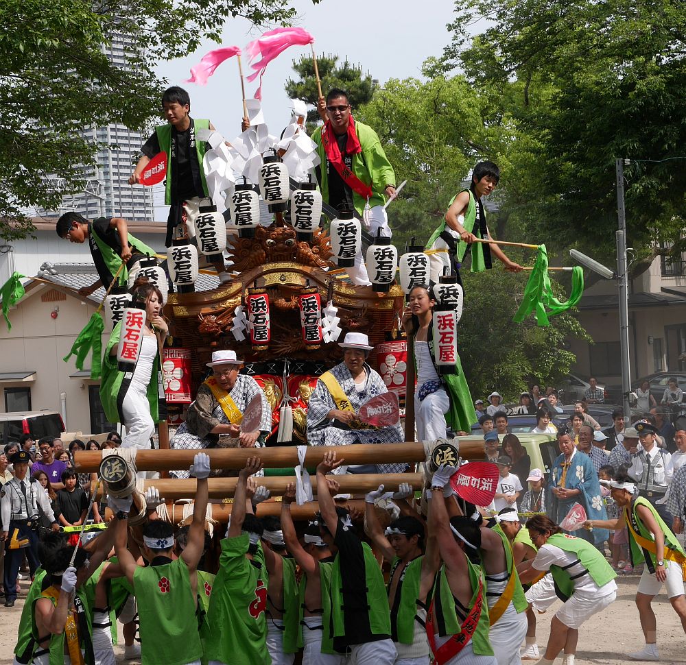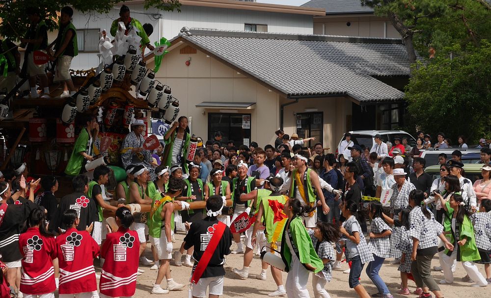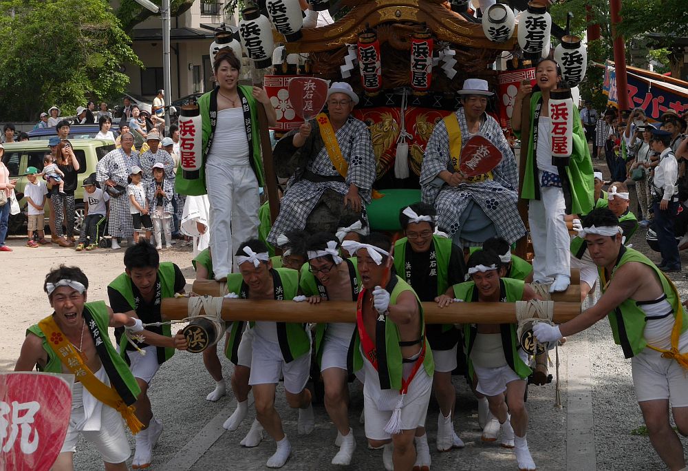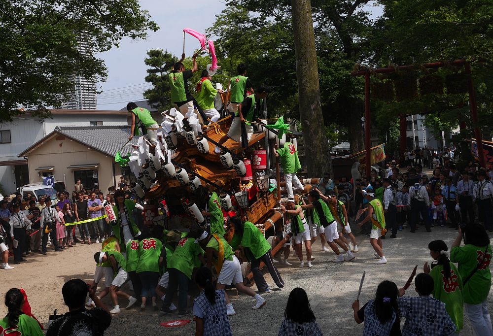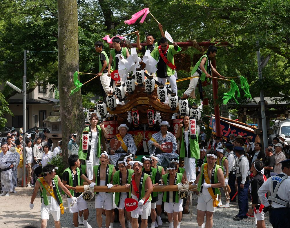 境内参道の南端、鳥居前で宮入を待つ浜石屋地車