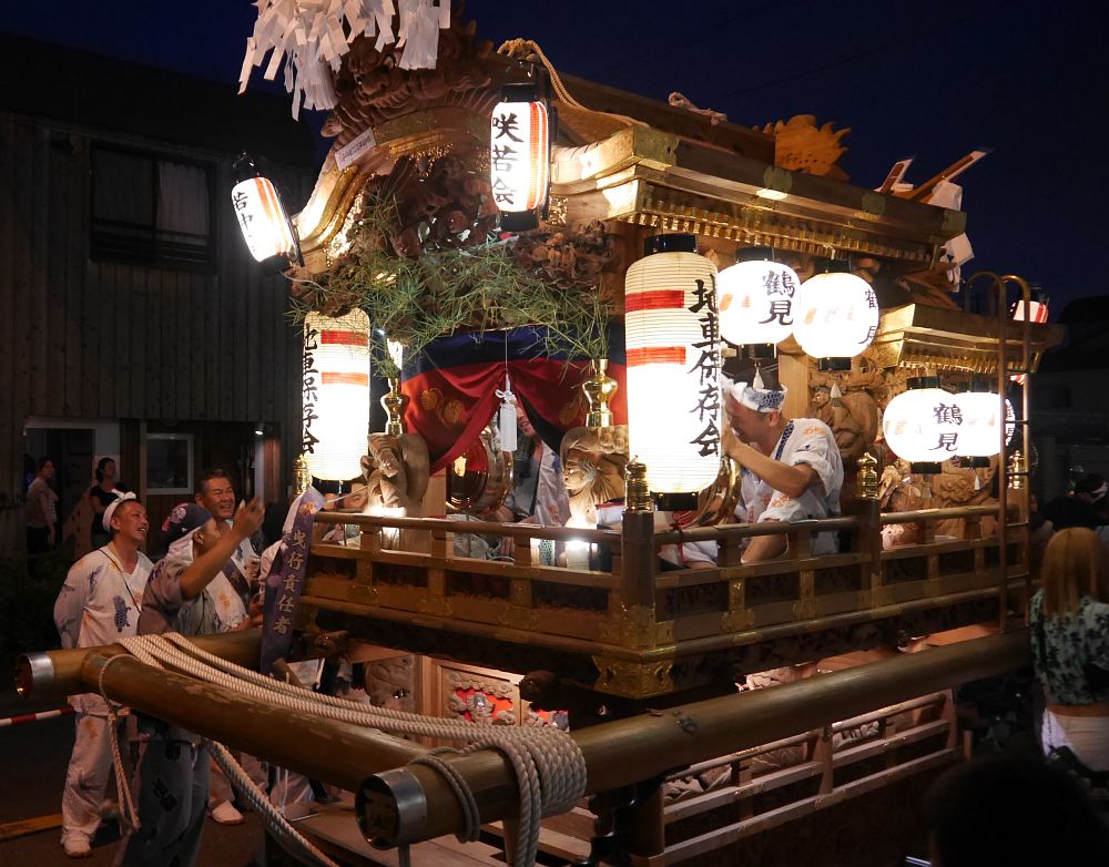 午後7時半過ぎ、鶴見神社前に据え置かれた鶴見地車