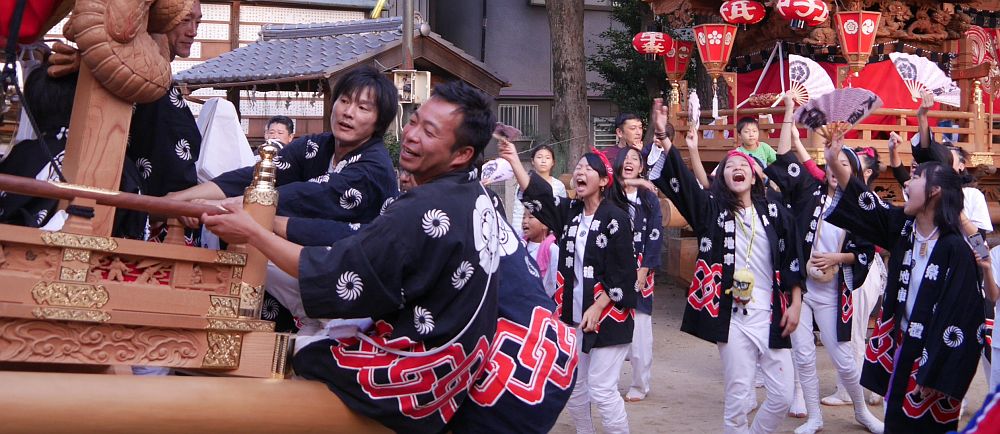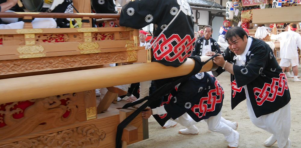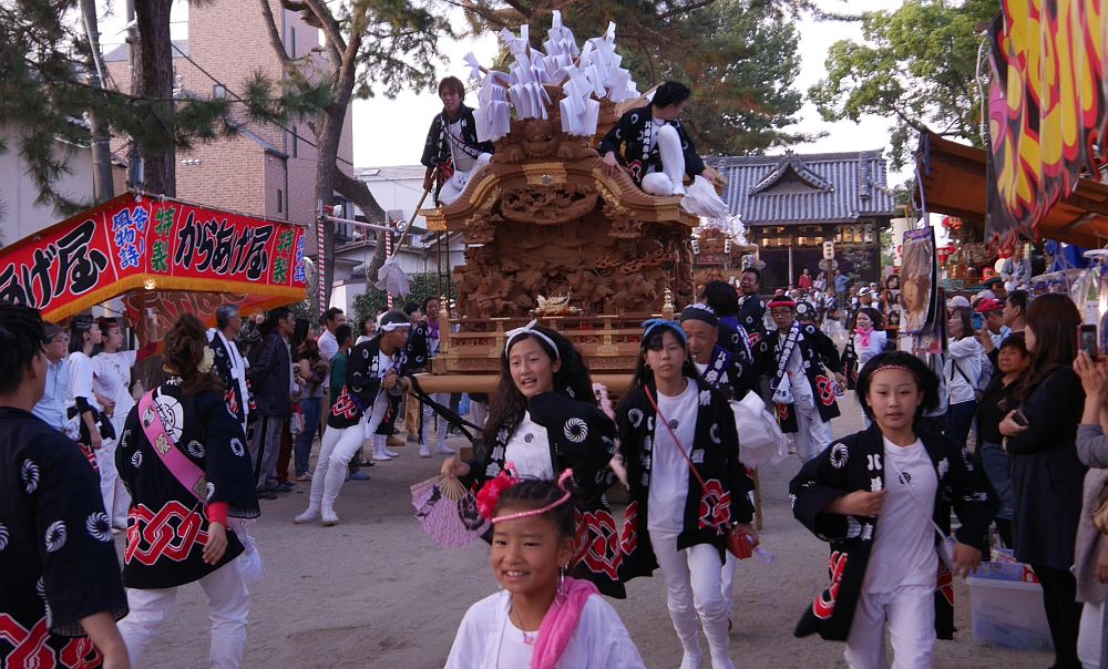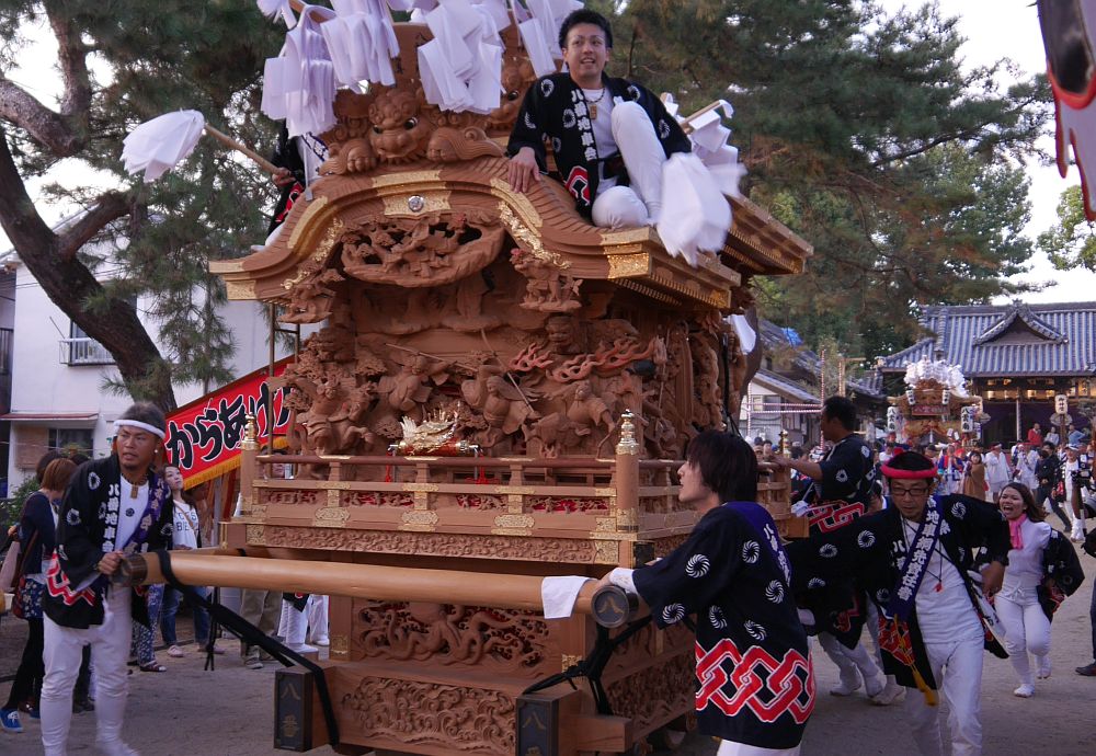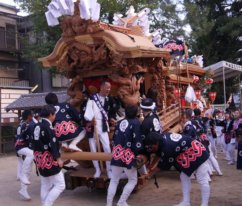 午後4時半、宮入3番八番地車が曳き綱とともに境内へ入ってきました。