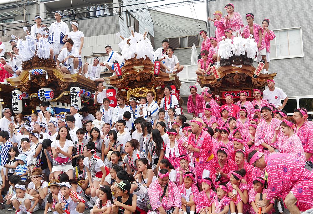 生野小学校北東の道路上に並んだ5台の地車