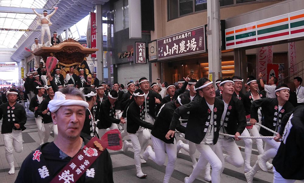 続いて宮本町地車の纏が城見橋商店街出口まで来ました。