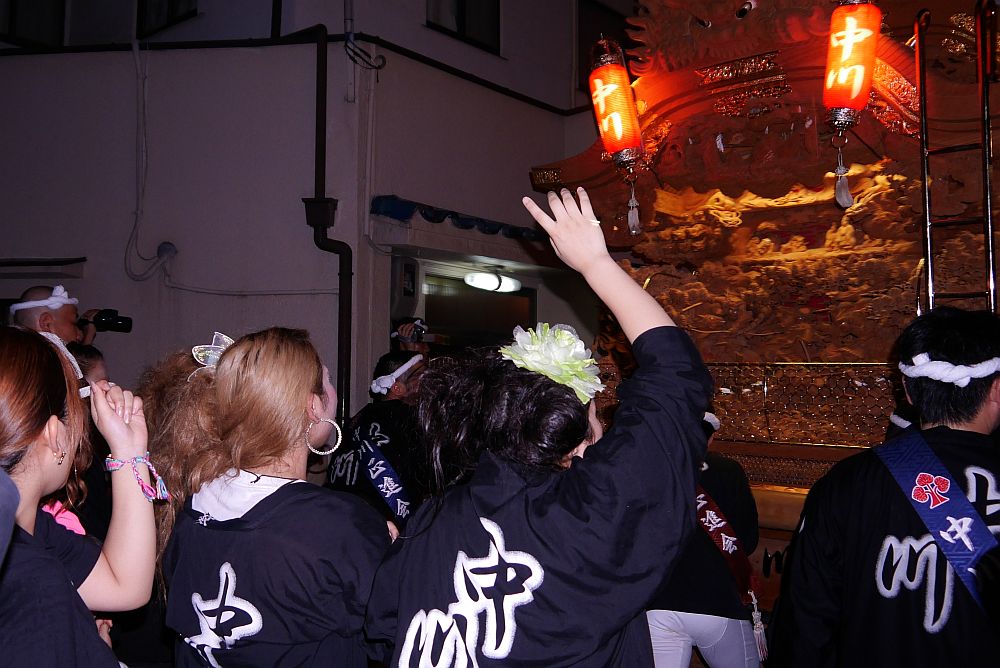 4台の地車が清見原神社境内に集結し、午後9時から合祀祭が行われました。