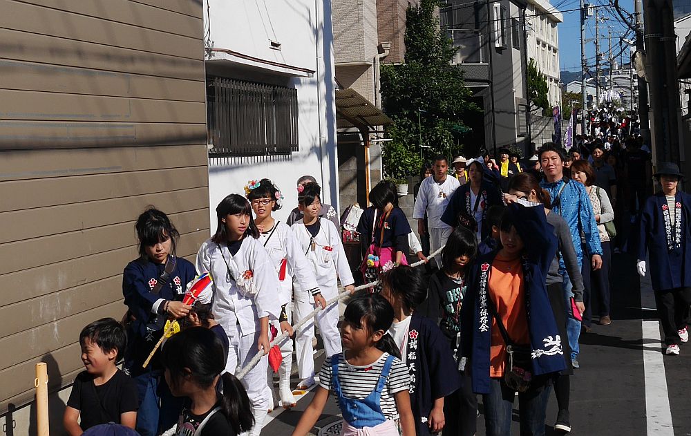 ちょうど曳行コースの中間、諸福中学校前を進みます。