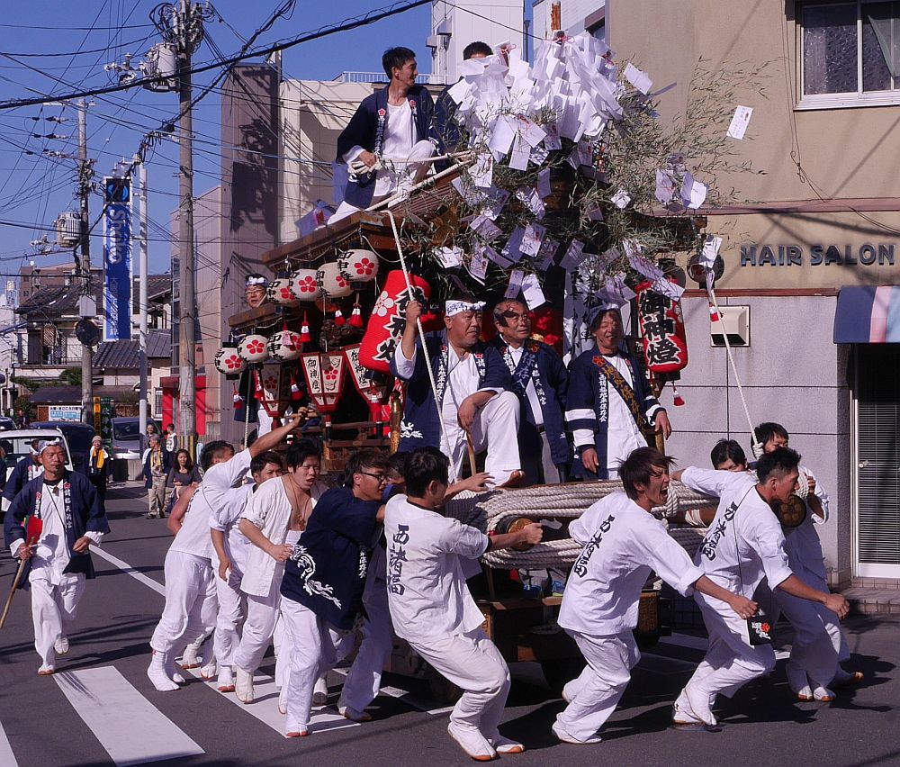地車が曲がり角に近づいてくるとお囃子が速くなります。