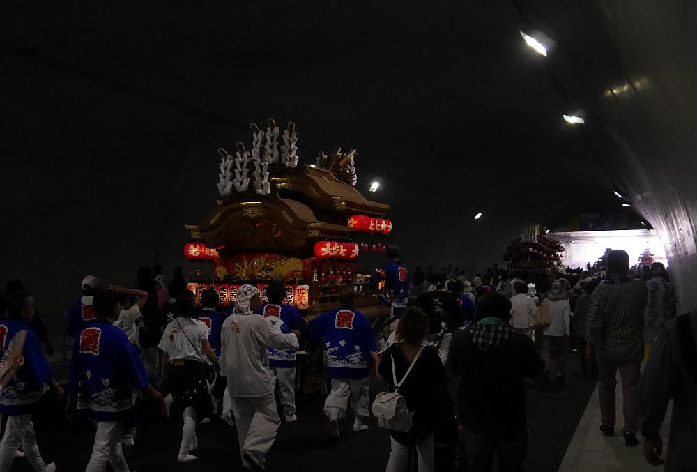 先頭4台のトンネル内曳行も撮りたくて、もう少し追いかけました。