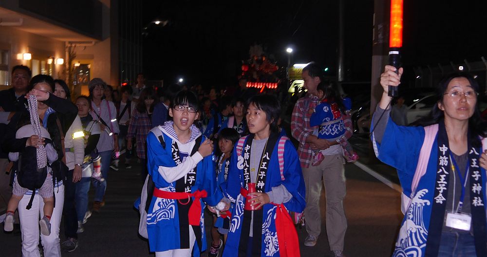 先に行った上中筋地車が中山寺駅前ロータリーを進みます。