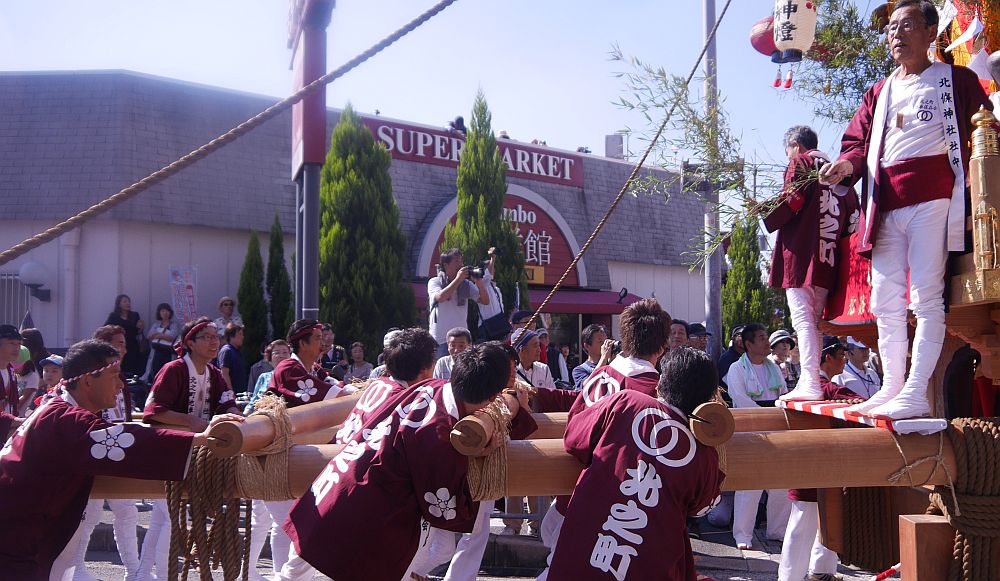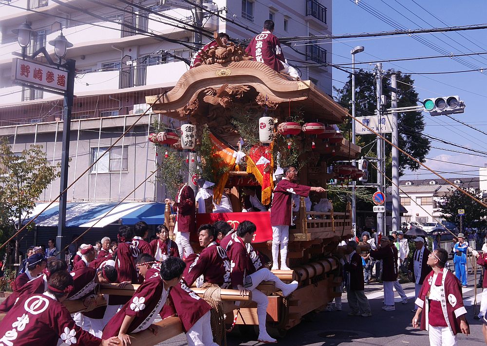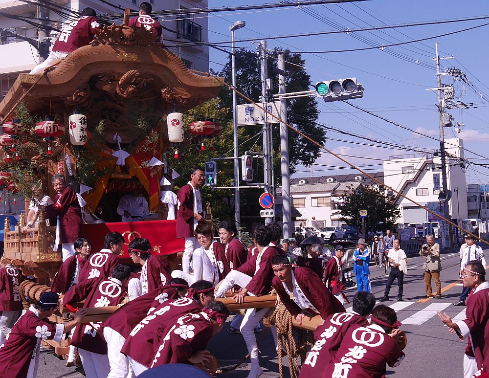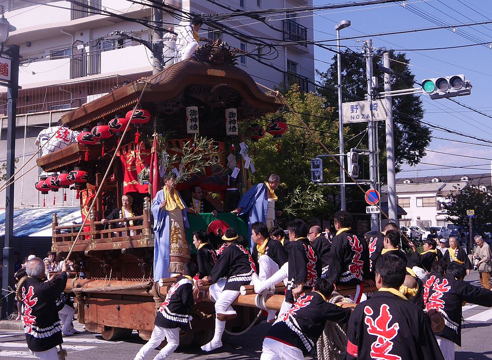 四条ふるさと祭りの見どころ、北河内型の巨大地車が野崎交差点で方向転換