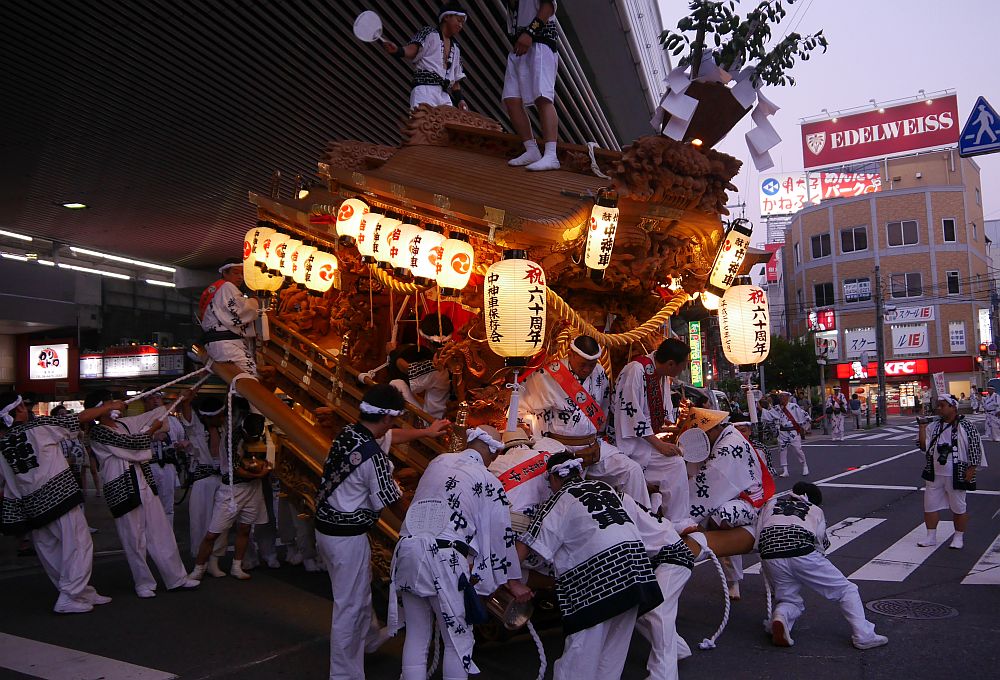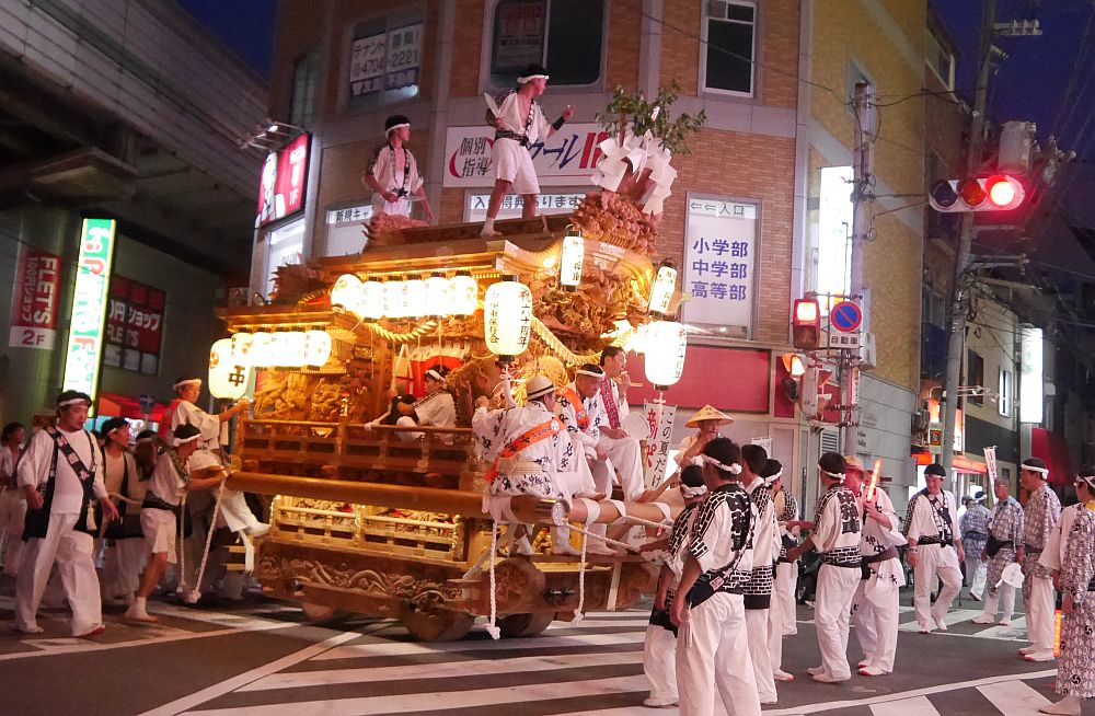 午後7時、JR塚本駅ホームに降り立つとだんじり囃子の音が聞こえてきます♪