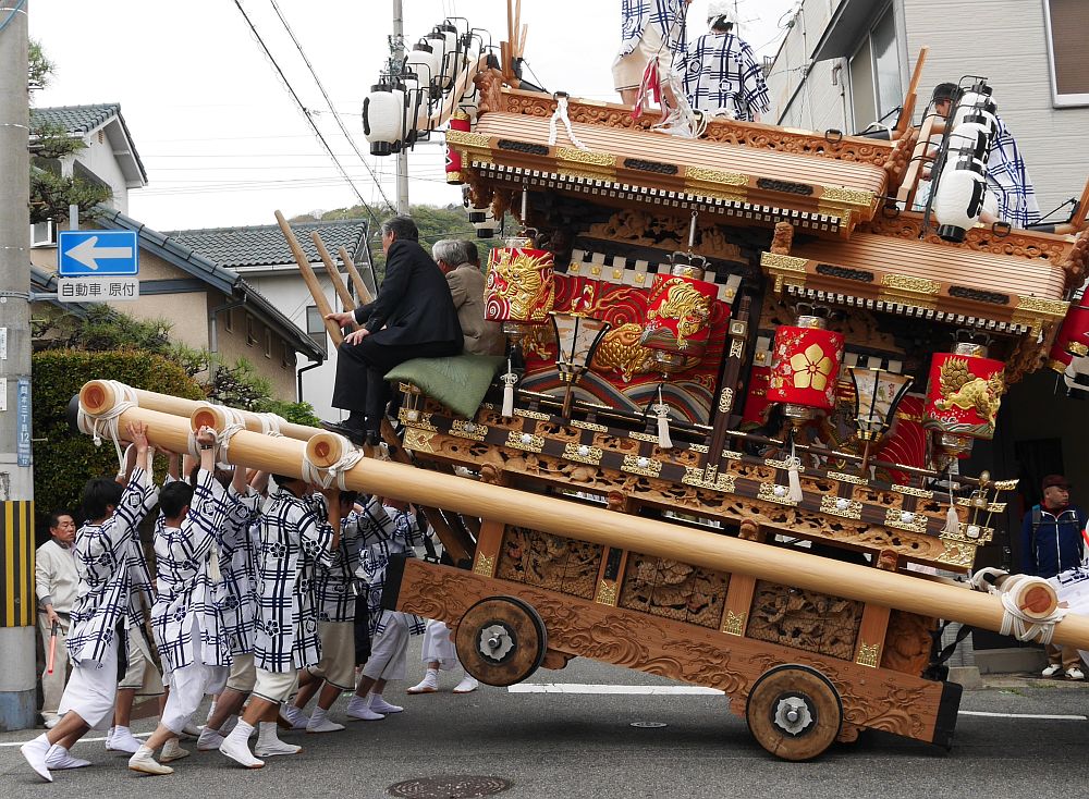 2号線岡本交差点の一つ北側の交差点を走って渡る岡本地車