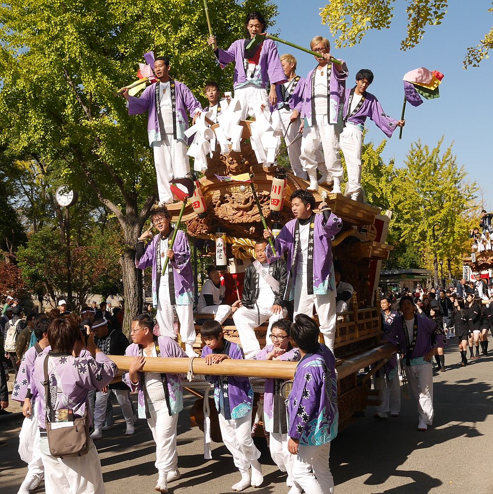 11台の地車が太陽の広場へ向かって進みます。