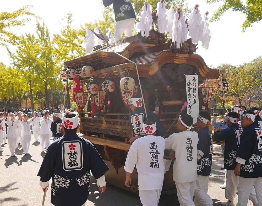 午前10時過ぎ、大阪城公園内の道に地車の姿が見えます。