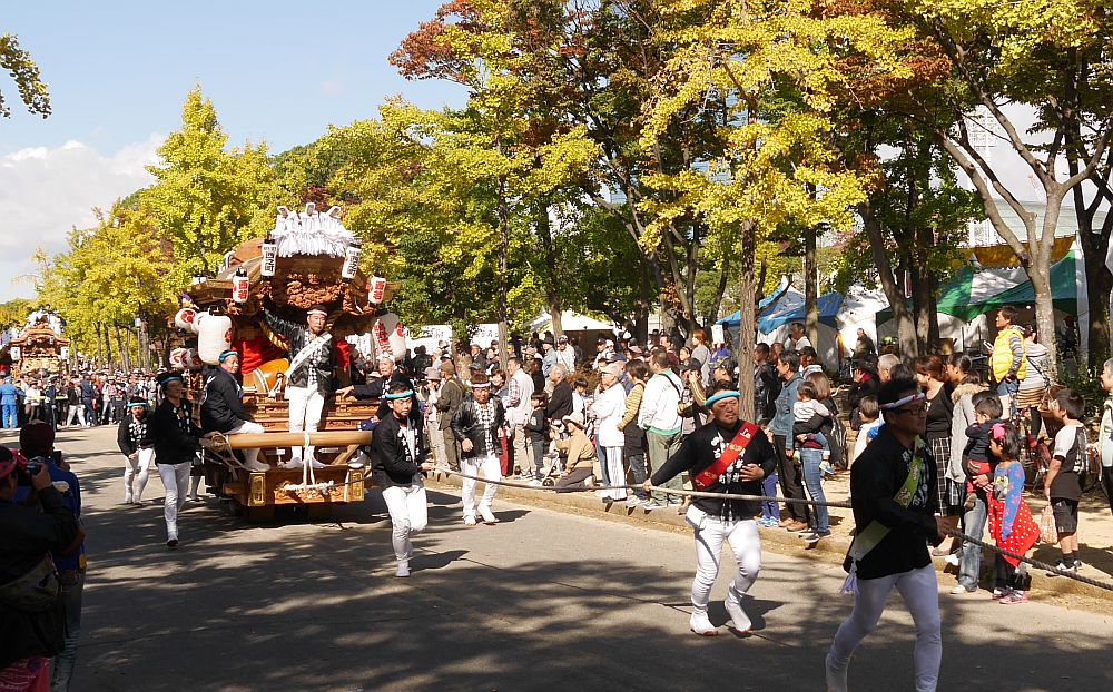 2台目、鴫野中之町地車も太陽の広場から出てきました。