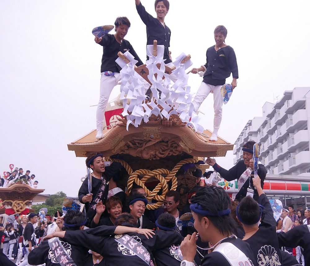 すぐに中央の山伏地車の鳴り物が始まりました。