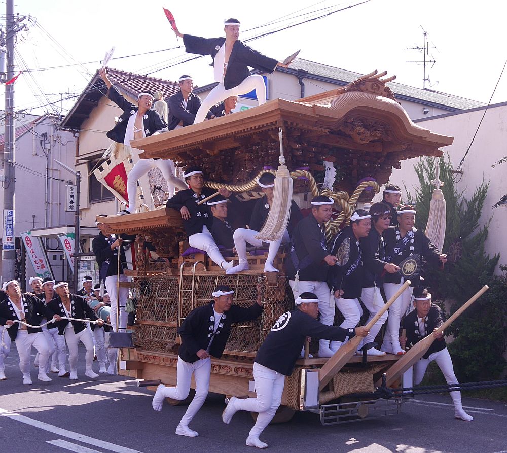 葛ノ葉稲荷神社前の道に並んだ信太地区の地車