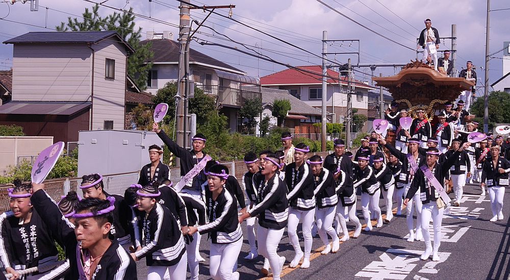 ここからはJR阪和線沿いの道を富秋町へ向かって走る信太地区9台連合曳きの
