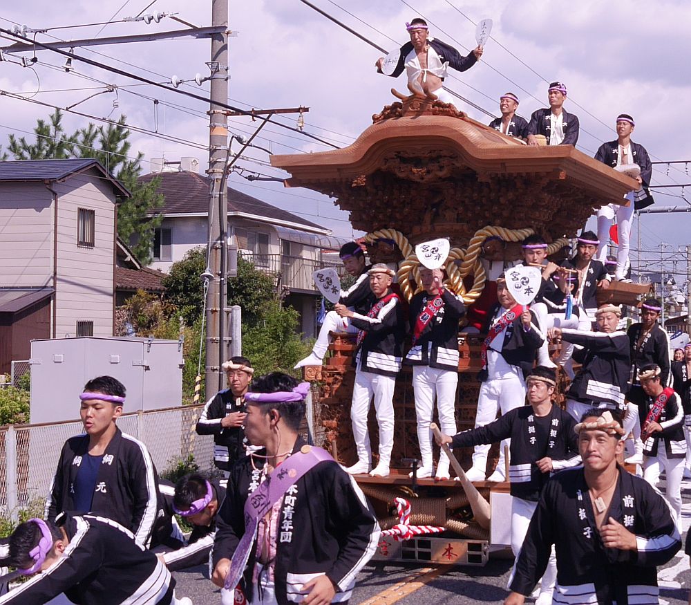葛ノ葉町に乗り入れた信太地区9台の地車は休憩の後、今度は次の訪問地