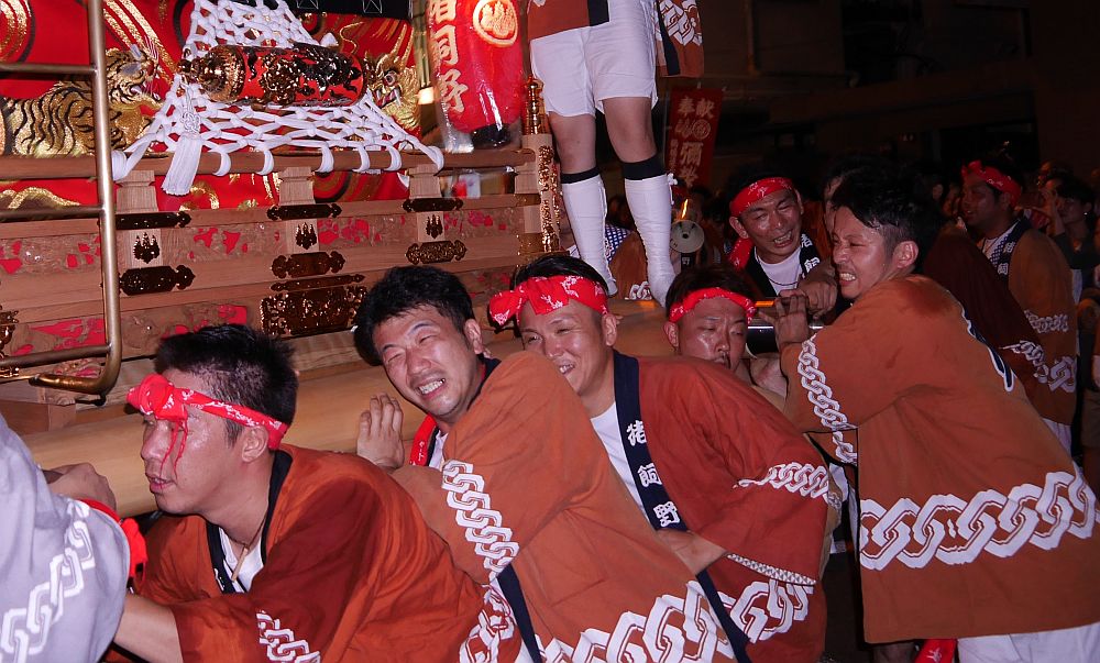 後ろを担ぎ上げて蛇行しながら疎開道路を練り回す猪飼野地車
