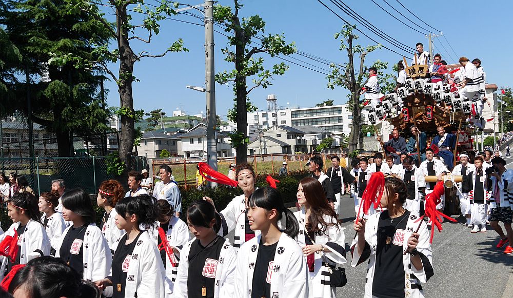 新反高橋から下りてきた 野寄地車の綱先が住吉小学校近くまできました。