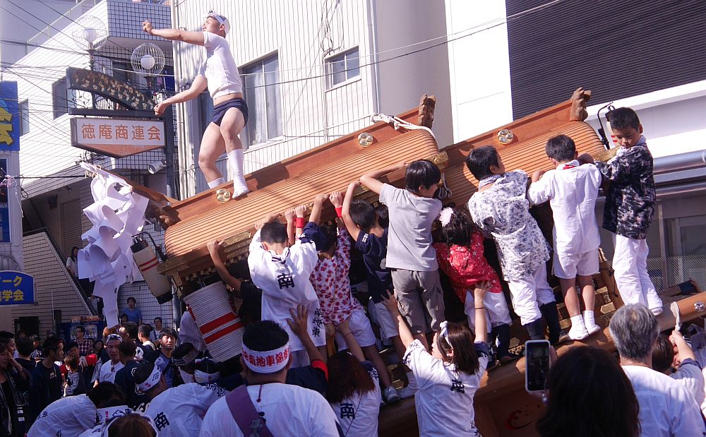 地車の前にもたくさんの子供