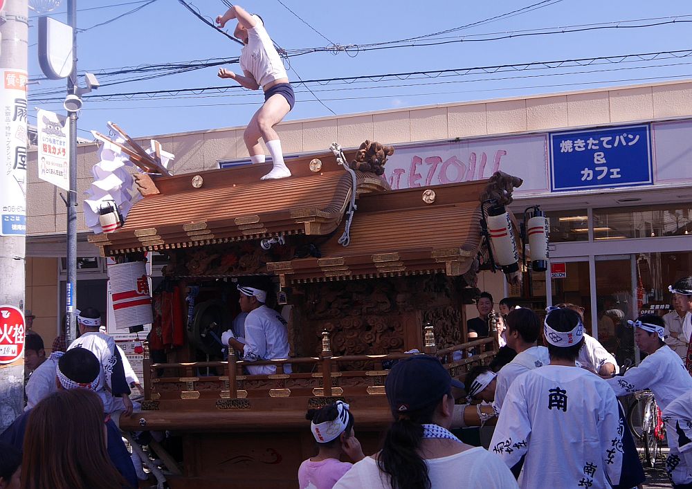 稲田南地車の周囲には子供たちが乗り込んでいます。