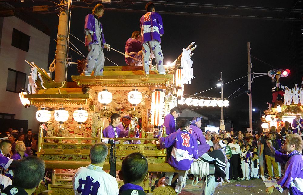 6町地車の鉦太鼓が激しく打ち鳴らされます。
