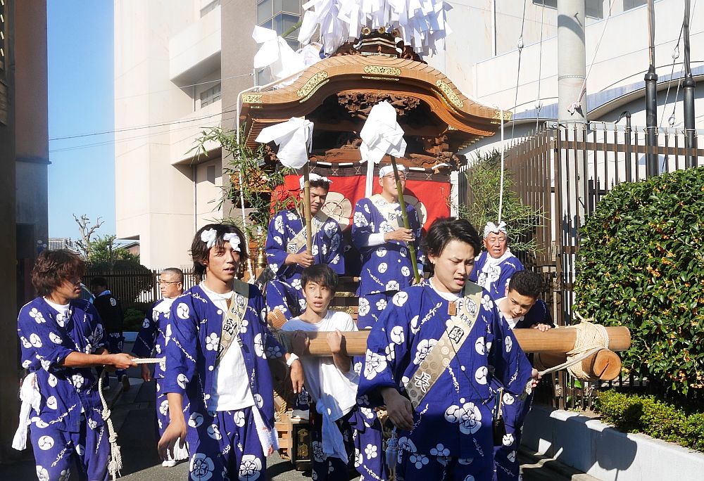 午前9時10分過ぎ、守口市水道局前に6台の地車が集結しました。