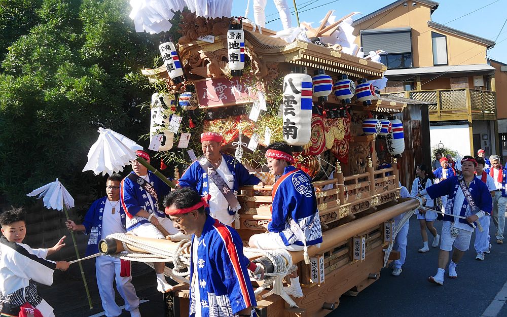 八番地車のだんじり囃子に合わせて踊る女の子たち。