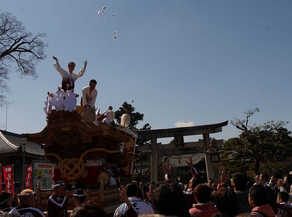 出発前に餅撒きです。残念ながらゲットできず。