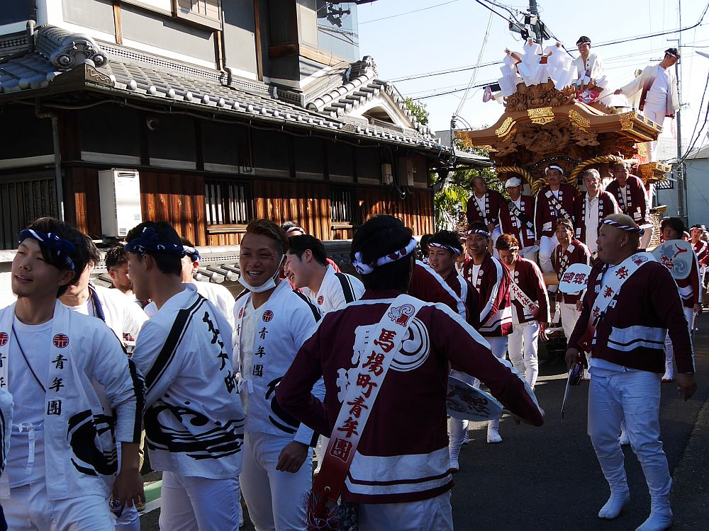 馬場町地車が誉田八幡宮東側の参道筋へ出てきました。