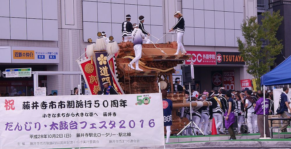 ロータリー曳行中、いろんなお囃子が入れ替わり囃されていました。