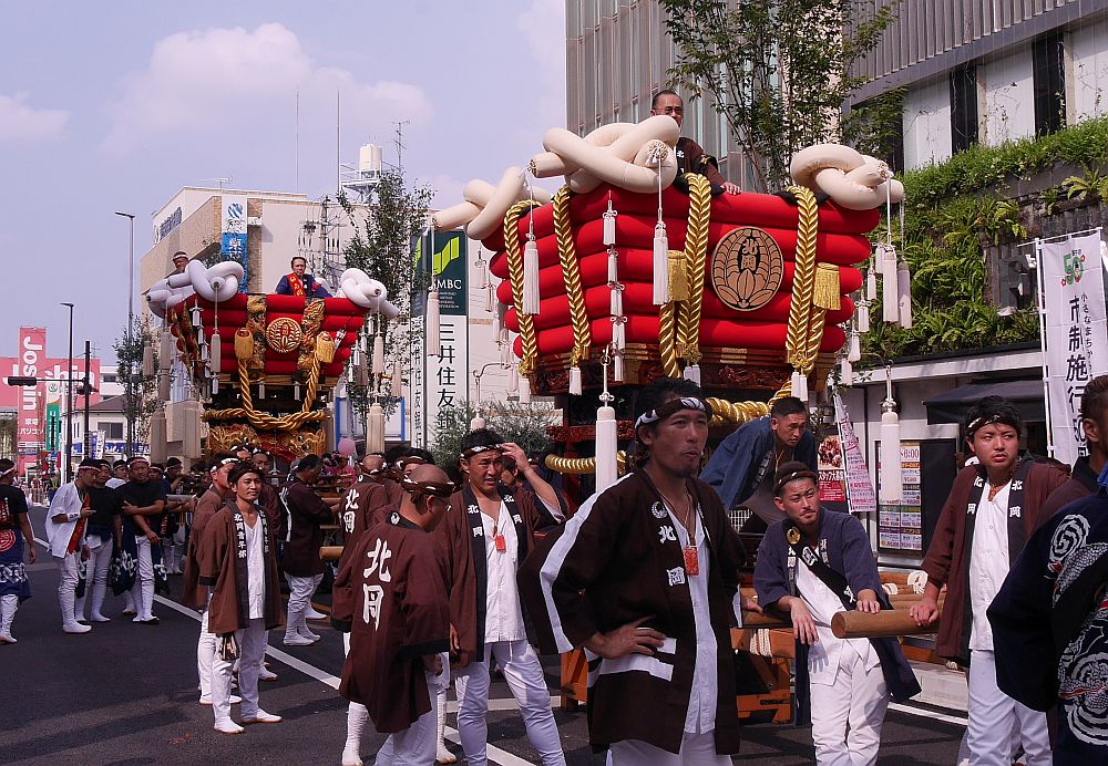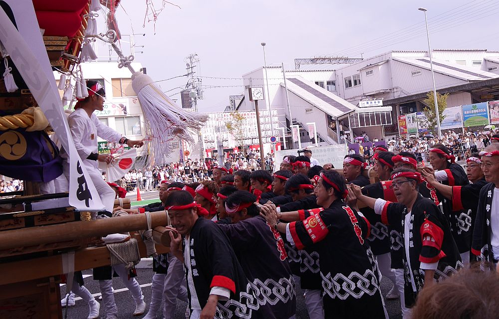 パレード順での画像紹介、ここでは10番野中地車と11番〜13番の津堂、北岡、南岡の太鼓台
