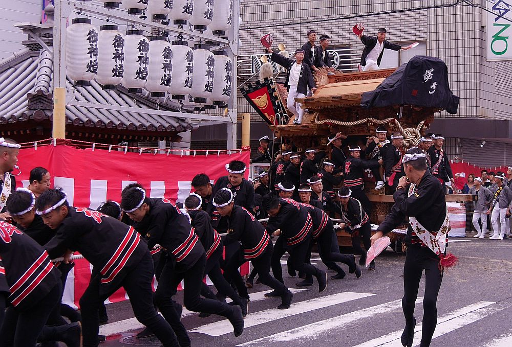 曳き手が元気よく交差点を曲がっていきます。
