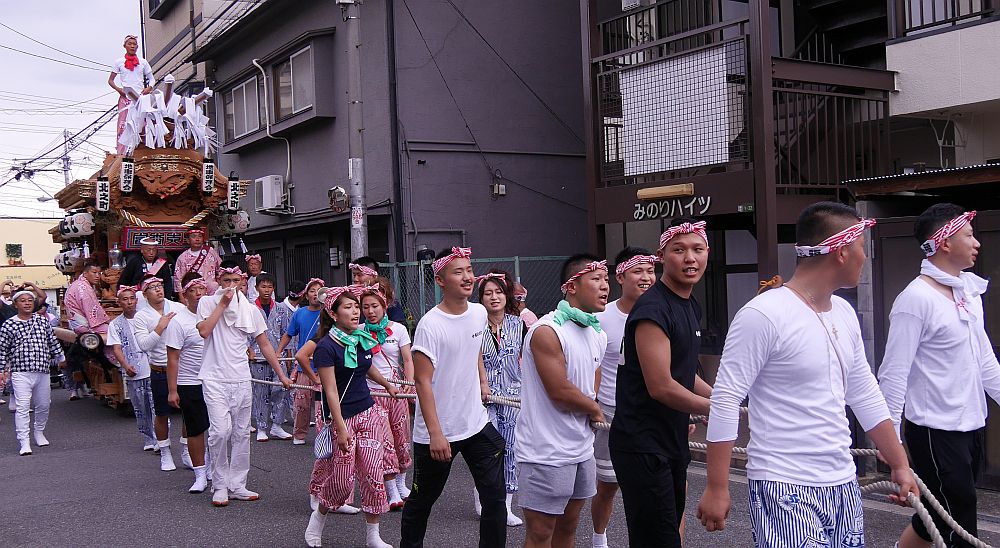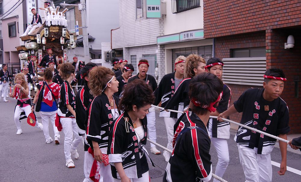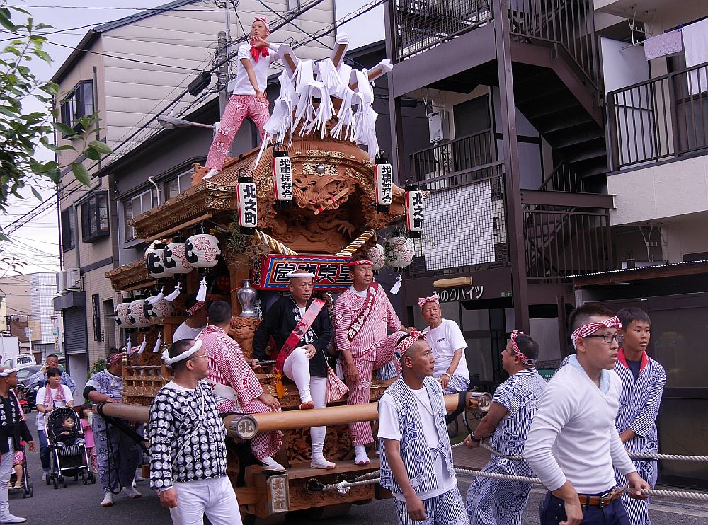 3台とも頭を下げ、鉦太鼓が激しく打ち鳴らされています。