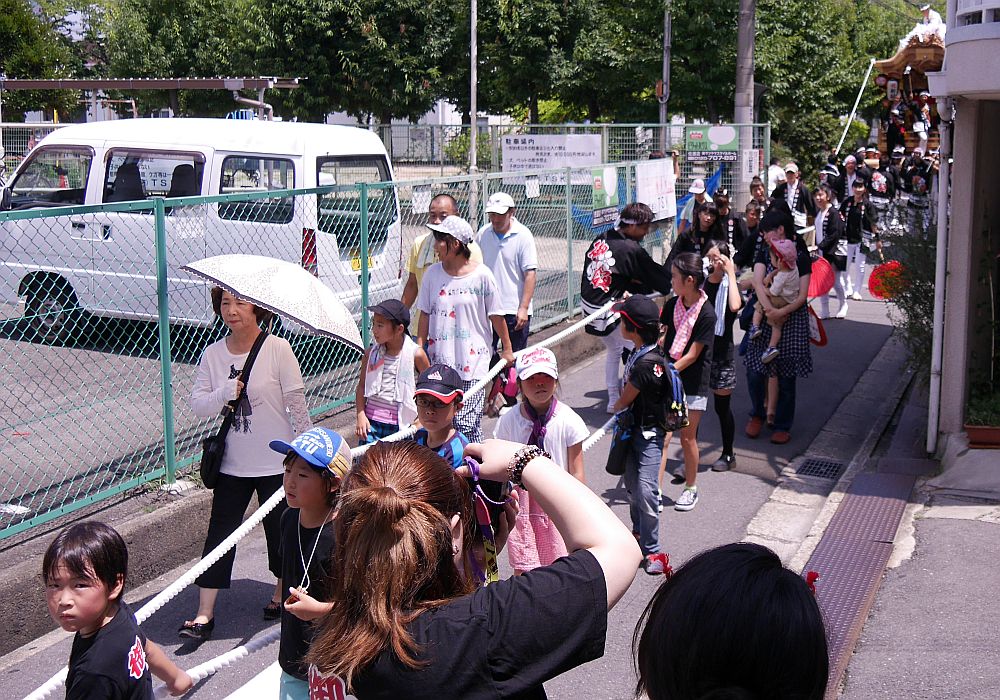 公園横を進む曳き手の子供たち