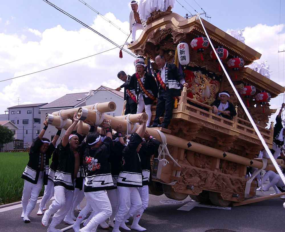 御領の村の中をお披露目曳行する新調御領地車