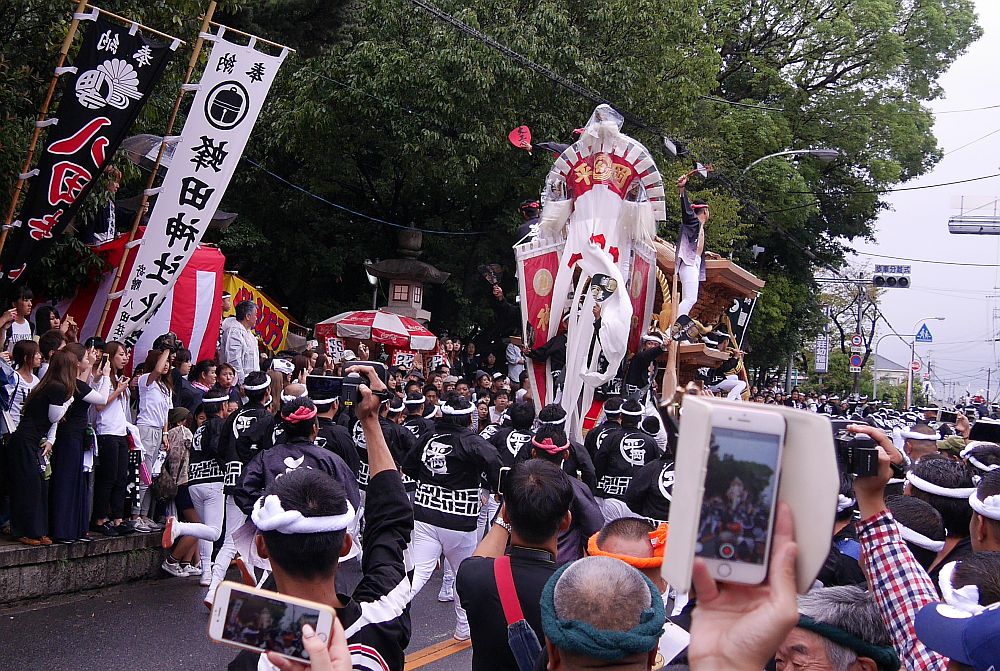 平成28年10月1日、堺市の八田荘地区地車宮入を見に行ってきました。 この日は堺市内を走り回っていろんな地区の祭りを楽しんできました。 まずは八田荘地区の蜂田神社宮入です。 私は午前7時半に神社前に到着、撮影場所を確保して宮入を待ちました。 そして午前8時から8台の地車の蜂田神社宮入が始まりました。 ここでは宮入4番から6番の南之町 平岡町 八田北町 の3台を紹介します。 では、堺市の八田荘地区地車宮入画像その2をご覧下さい。