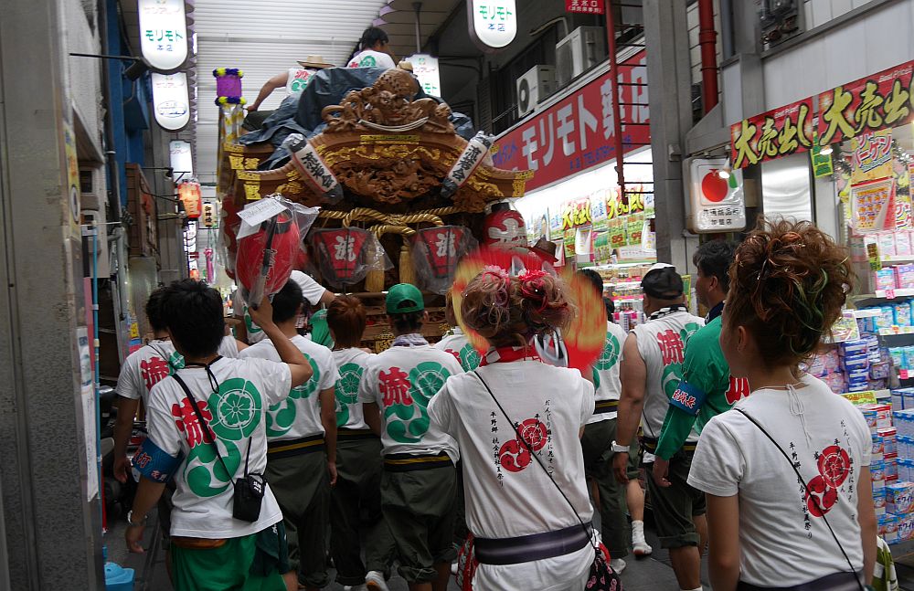 非常にゆっくりとした道中囃子で全興寺前を進みます。