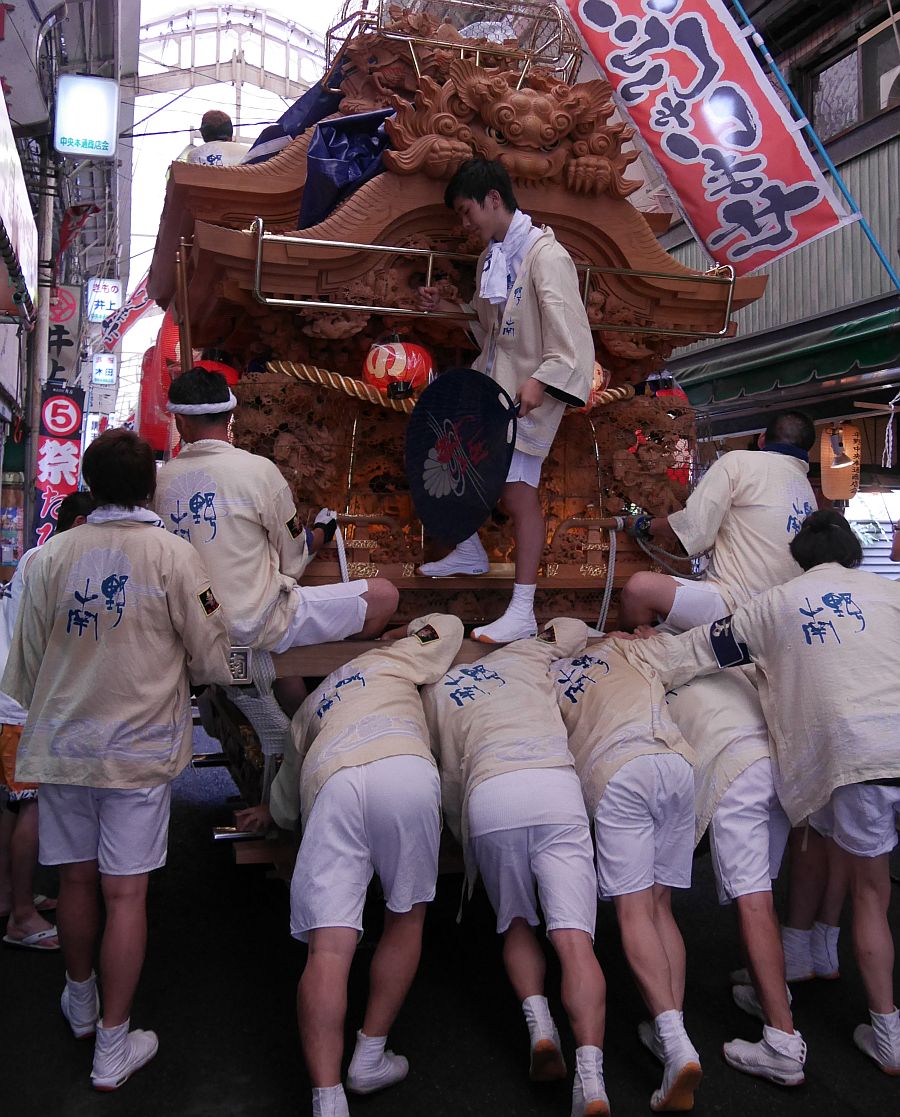午後0時20分、野堂町南組地車が商店街へ入っていきます。