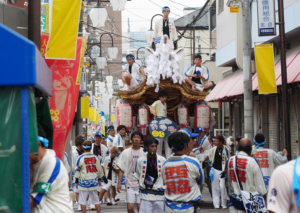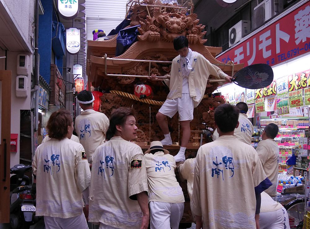 午後0時10分頃、3番目に商店街へ入っていく西脇組地車