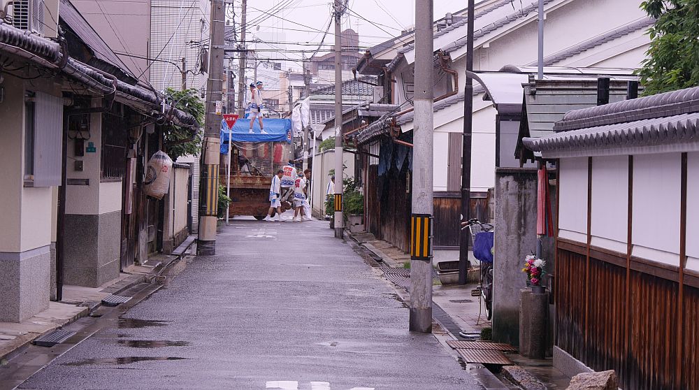 雨が降ってきたので地車の横周りもシートで覆って出発です。