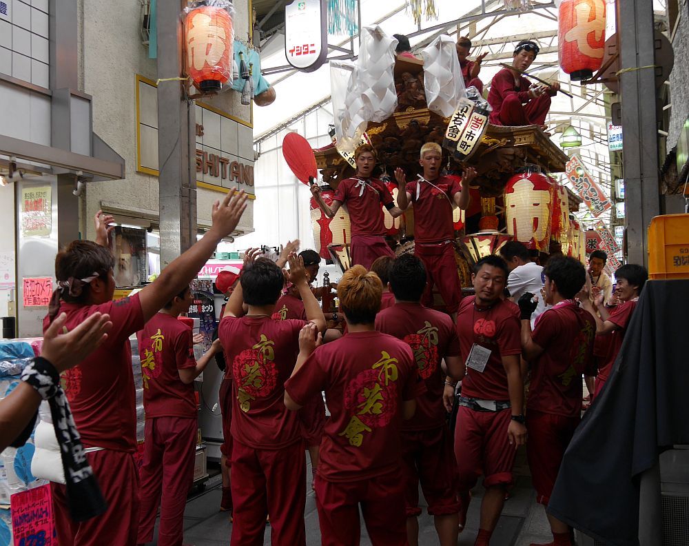 午後1時5分過ぎ、市町地車が商店街へ入っていきました。