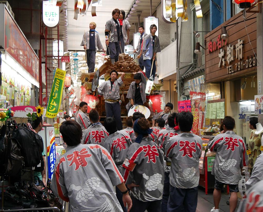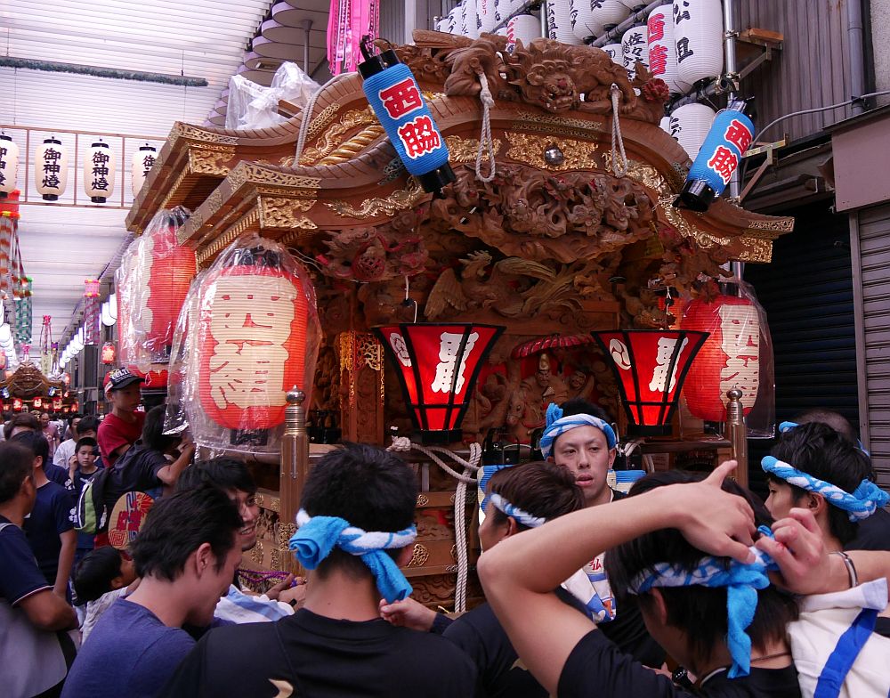 平野本町の「サンアレイ平野通商店街」と「平野中央本通商店街」に平野郷の地車9台が