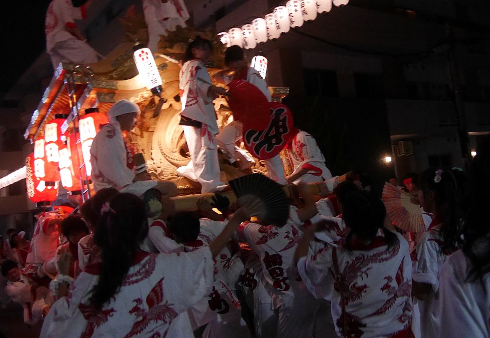 16日(土)午後は自転車での夏祭り地車曳行見物。