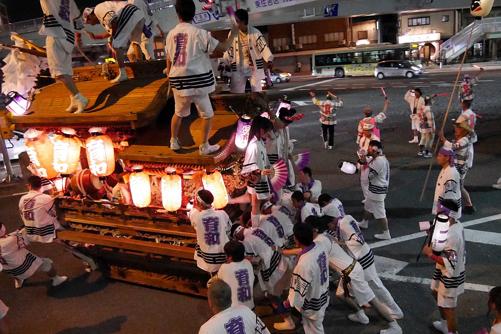 育和の夏祭り宵宮夜の曳行を見に行ってきました。