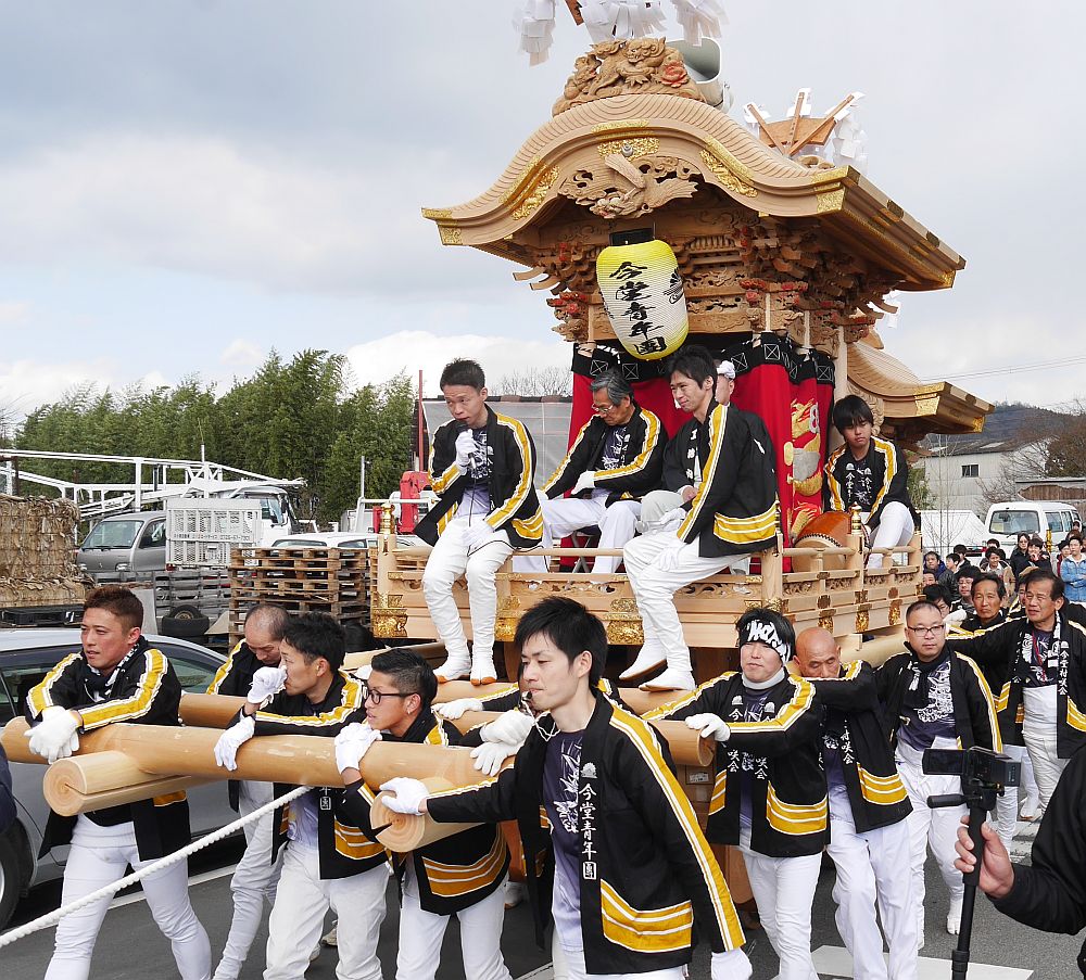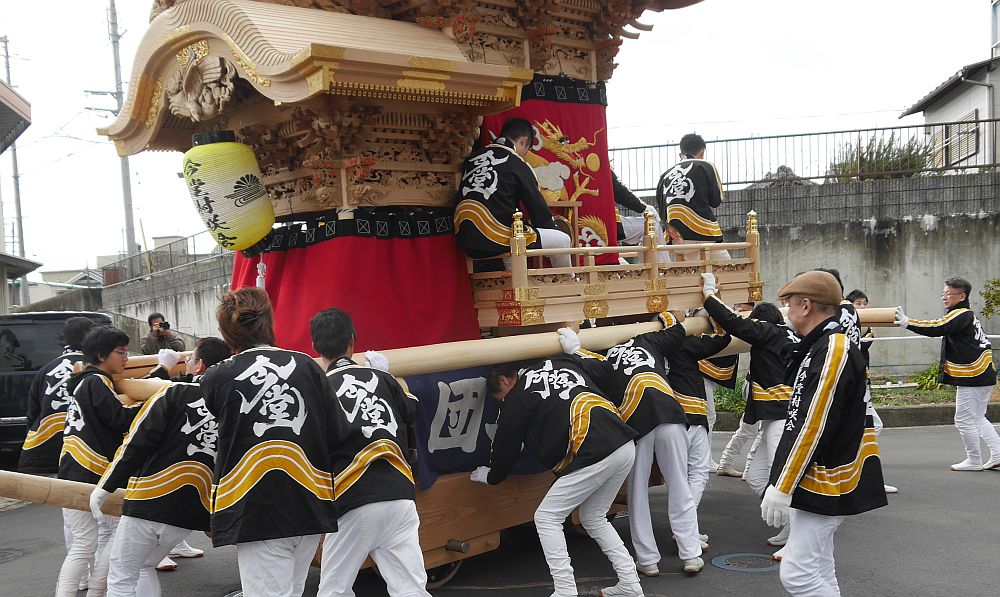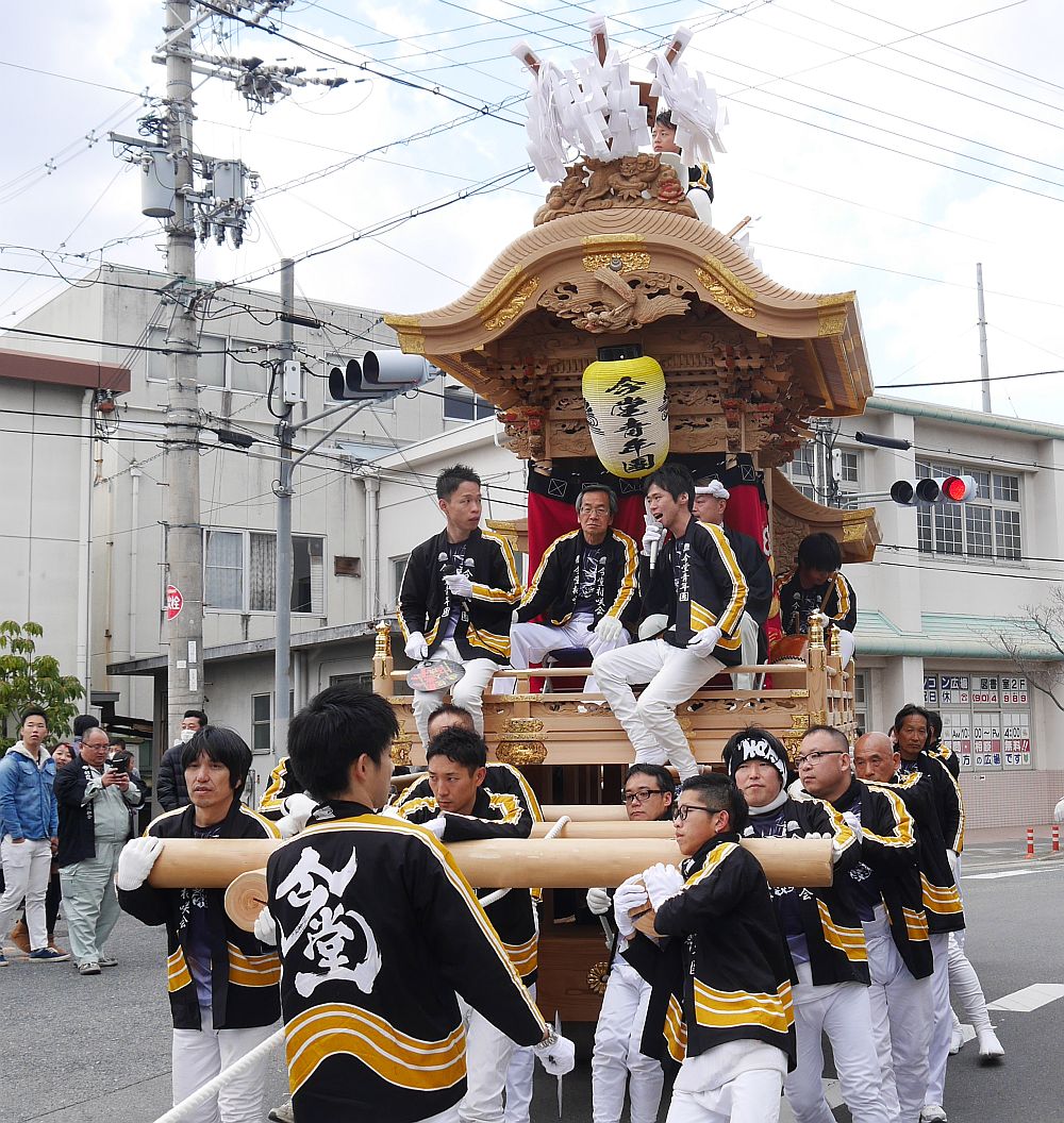 曳き唄ツーレロ節の声を響かせながら進む今堂地車