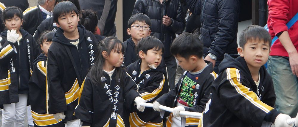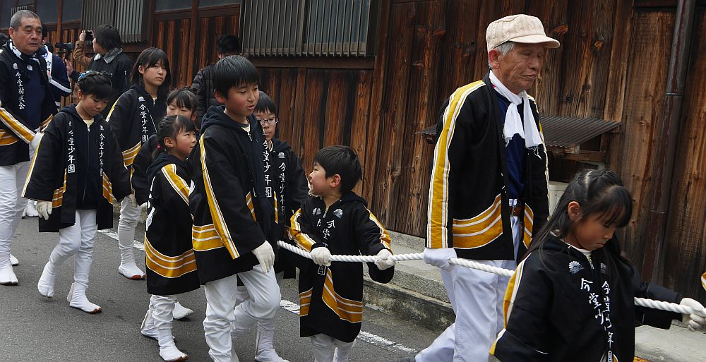 だんじり探してるときに道案内してくれたおじさんも綱を曳いてます。