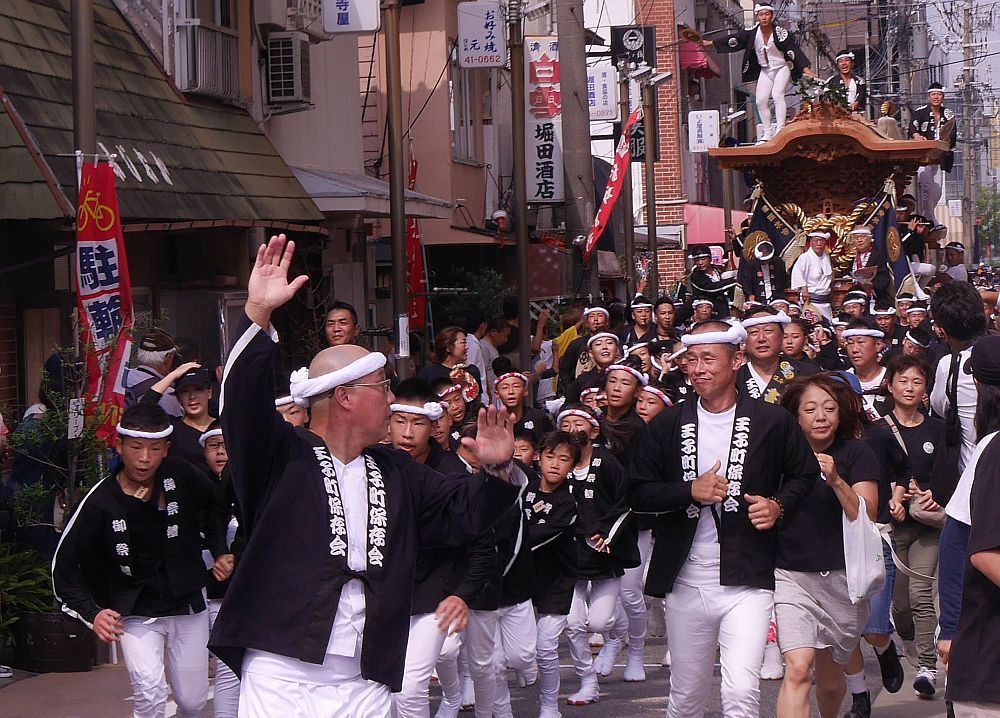 平成28年10月2日、和泉市の和泉市制60周年だんじり記念曳行を見に行ってきました。 和泉市の市制60周年を記念して市内の35台もの地車が一堂に会するという一大イベント。 ここでは信太・幸地区の帰町画像を紹介します。 ミユキで左折した信太・幸地区各町は東進し、 宮本町 葛の葉町 上町 上代町 富秋町 王子町 尾井町 太町 幸町 の順に府道30号線小栗街道へ出てきました。 では、和泉市の和泉市制60周年だんじり記念曳行画像その5:信太・幸帰町をご覧下さい。