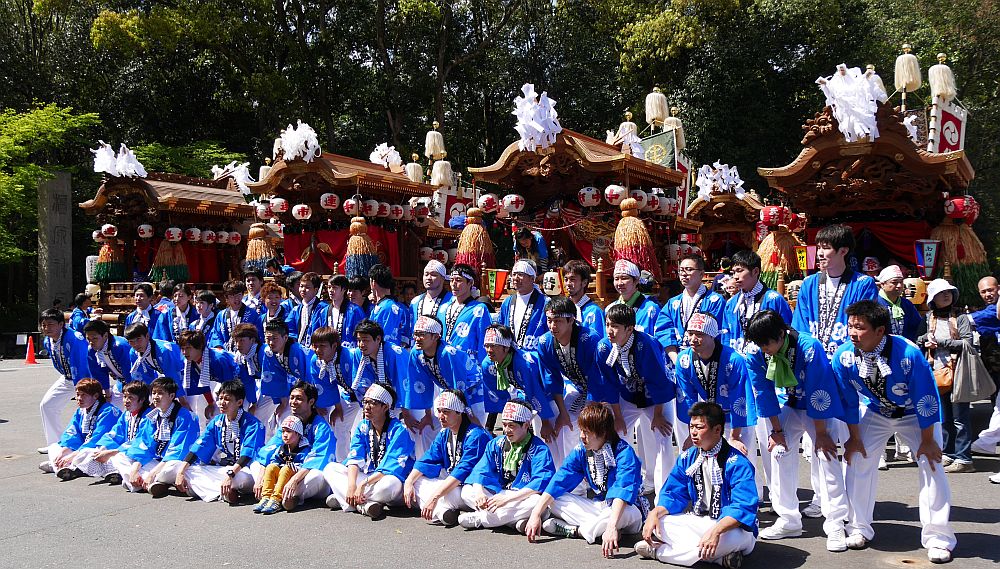 橿原神宮北参道鳥居前に並ぶ橿原市の9台の地車