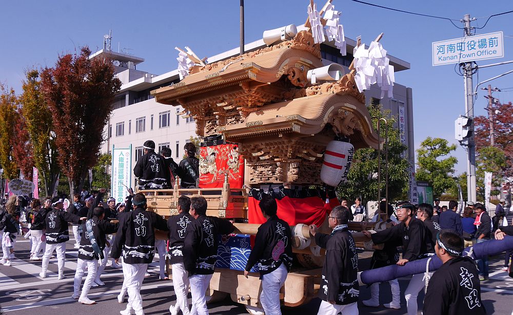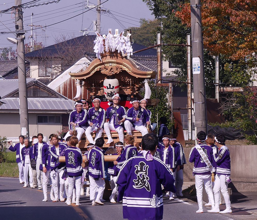 途中、東山、大ヶ塚、一須賀の3台の地車が待機中。